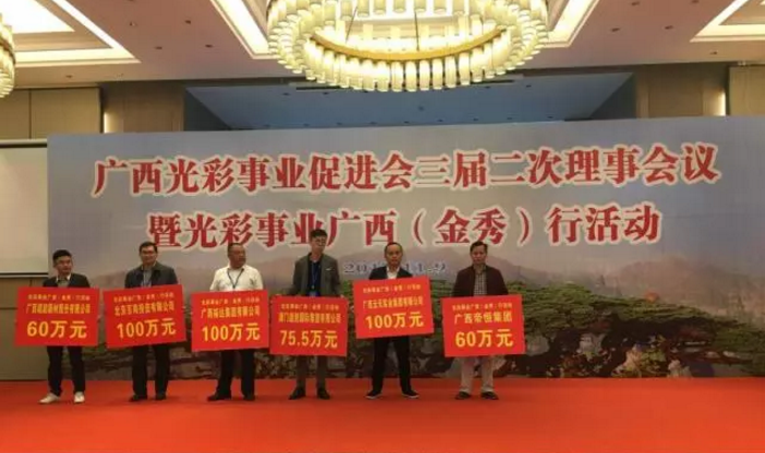 为深入学习党的十九大会议和中共扶贫开发工作会议精神,研究探讨新时代下广西光彩事业的发展问题,11月9日,广西光彩事业促进会第三届第二次理事会暨光彩事业广西(金秀)行活动在广西金秀县举行。经过上午对金秀扶贫项目的实地考察,为帮助身处大瑶山的贫困学子上学,推动金秀教育事业的发展,在下午的光彩事业广西(金秀)行会议上,理事会成员及各企业家代表纷纷慷慨解囊,筹集资金资助大瑶山区贫困学子。