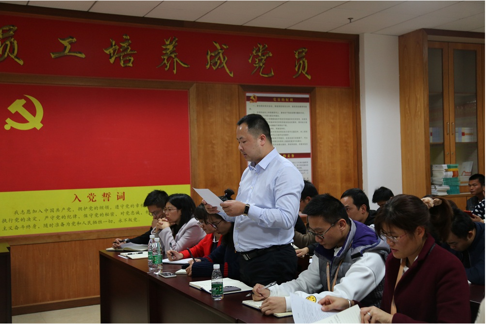 为进一步加强党员队伍建设,吸收新鲜血液,壮大党支部队伍。2018年11月23日下午4点,集团党支部在集团7楼党员活动室召开党员大会,讨论预备党员转正及吸收预备党员事宜。支部27名正式党员、2名预备党员及2名入党积极分子参加本次会议,兴宾区城北街道党工委组织干事潘彩妮、卢玉妮列席会议,大会由支部组织委员、集团人力资源部副经理曾雪菊主持。