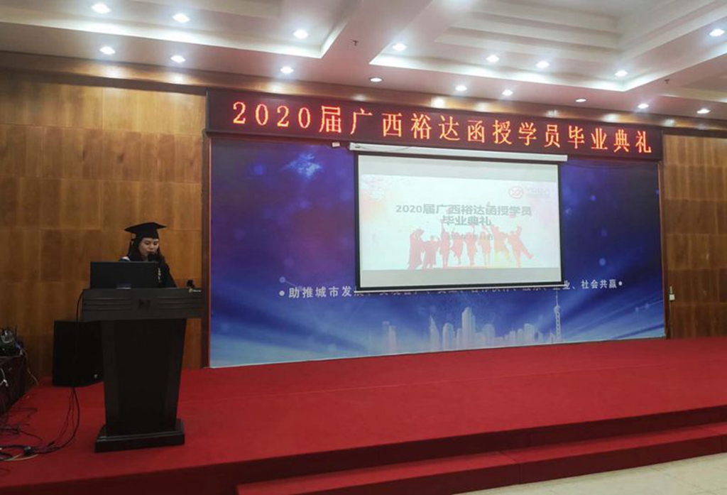 典礼伊始,陈妍妮女士代表裕达集团对2020届毕业的66名函授学员圆满完成学业表示诚挚祝贺,对他们克服重重困难,妥善解决工学矛盾的学习精神给予了充分肯定,并希望他们将学到的理论和知识运用到工作中去,从实际出发,大胆探索,勇于实践,不断实现自我增值。