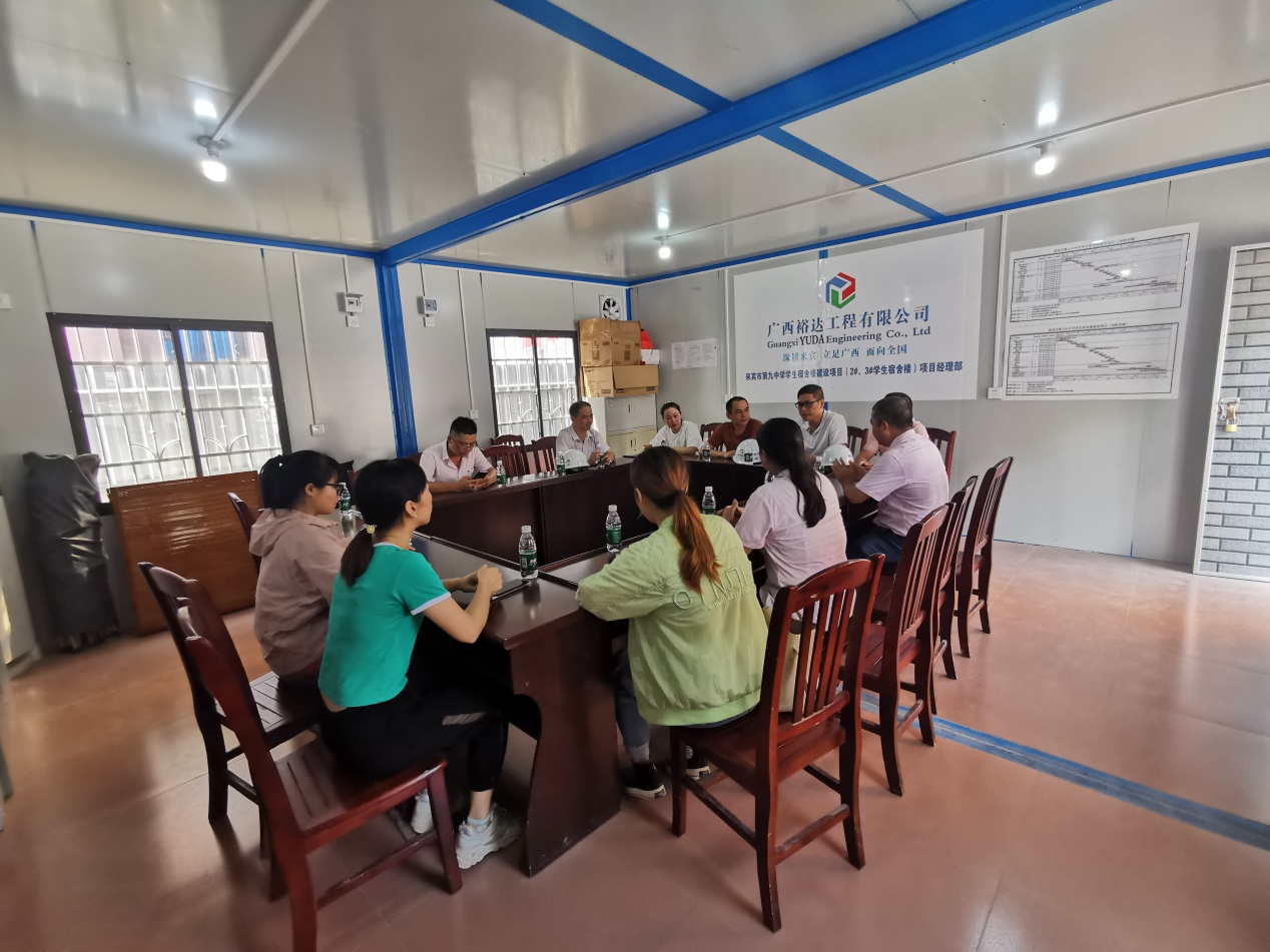在九中施工现场,何华飞会长对一线农民工为来宾市城市建设做出的贡献表示感谢,向奋战在高温一线的全市建筑施工人员、劳动者致以崇高的敬意和亲切慰问。要求施工现场的管理人员要合理调整工作时间,妥善安排员工休息时间,注意劳逸结合,充分利用现有的技术能力,降低作业环境的温度。项目部要配备充足的防暑降温用品,做好后勤保障,力争为一线广大农民工提供一个更加舒适的工作生活环境。