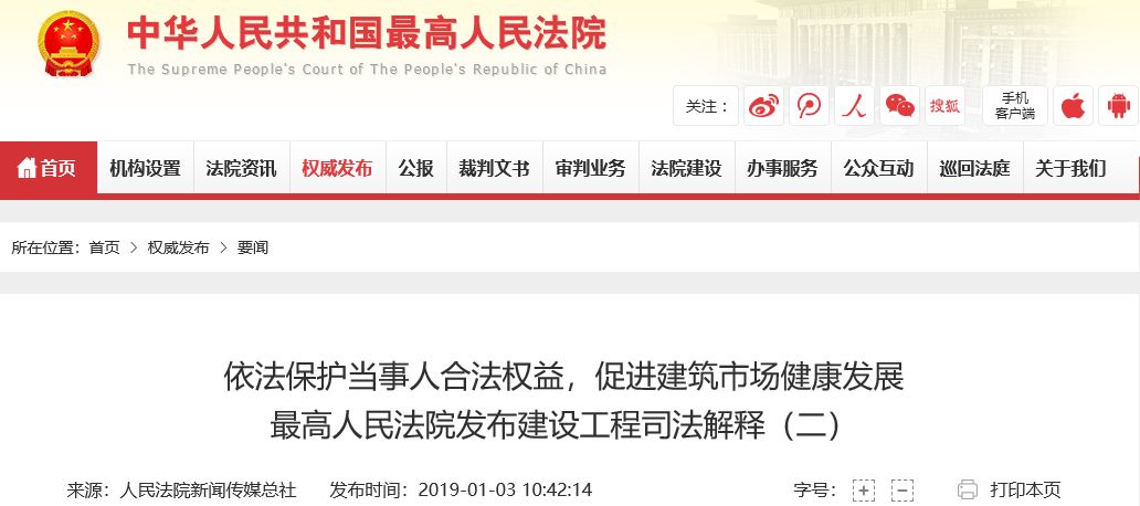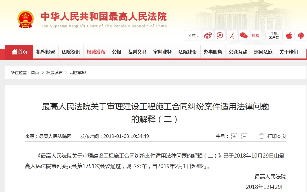 重磅!最高法发布《建设工程司法解释(二)》,2019年2月1日起施行!