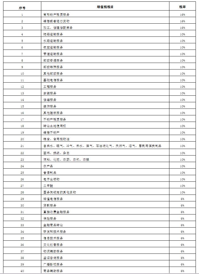 实施更大规模的减税。……,深化增值税改革,将制造业等行业现行16%的税率降至13%将交通运输业、建筑业等行业现行10%的税率降至9%确保主要行业税负明显降低;保持6%一档的税率不变,……,确保所有行业税负只减不增,继续向推进税率三档并两档、税制简化方向迈进。……