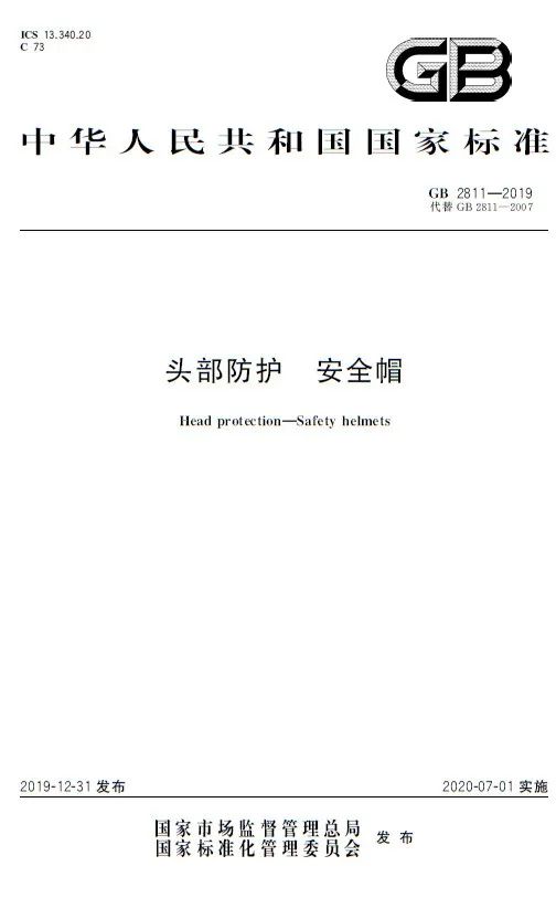 国家市场监管总局、国家标准委批准发布新版安全帽标准GB2811-2019《头部防护
