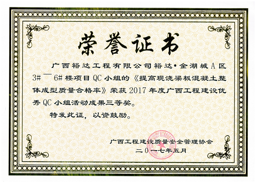 2017年广西工程建设优秀QC小组活动成果鼓励奖