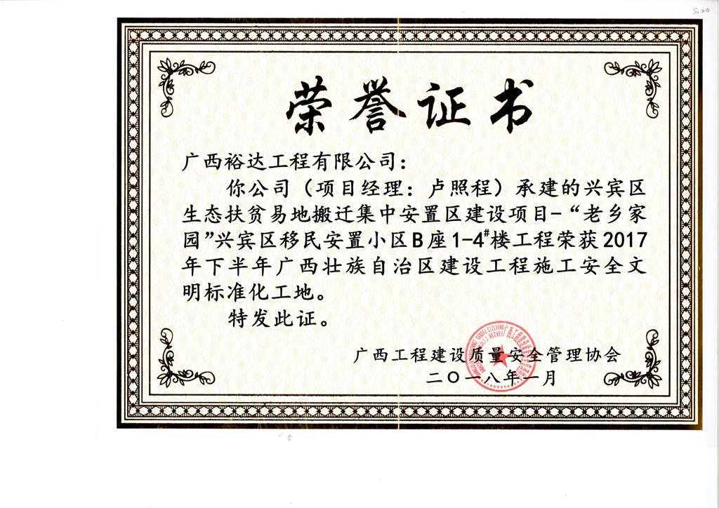 2017年下半年广西壮族自治区建设工程施工安全文明标准化工地
