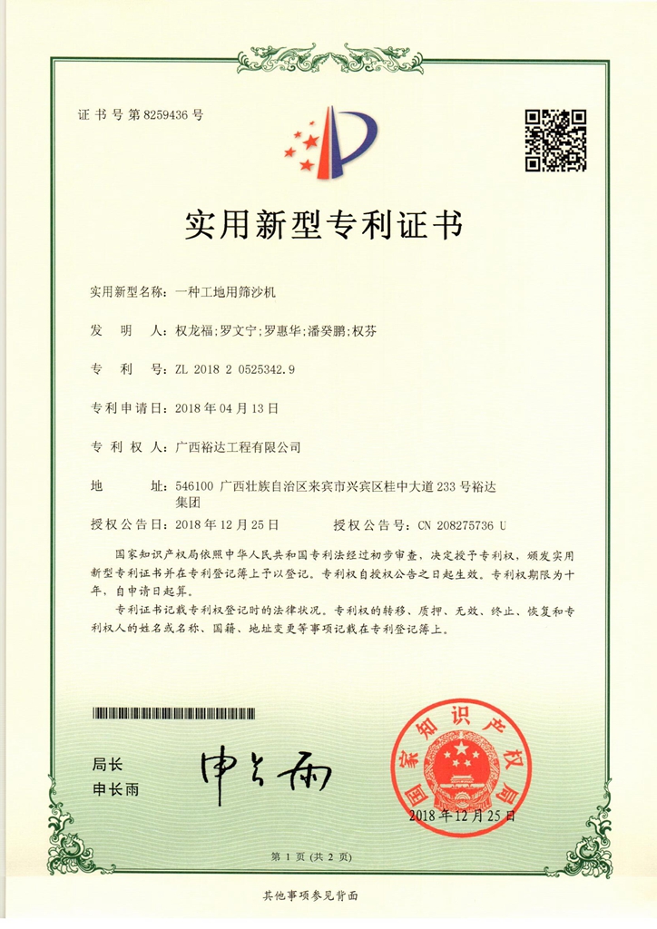 2018年实用新型专利证书(一种树木种植用辅助吊起装置)
