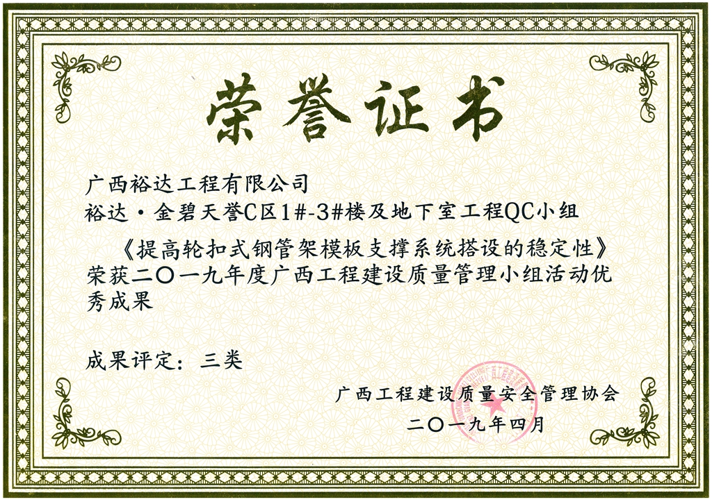 2019年度广西工程建设质量管理小组活动优秀成果《提高轮扣式钢管模板支撑系统搭设质量》