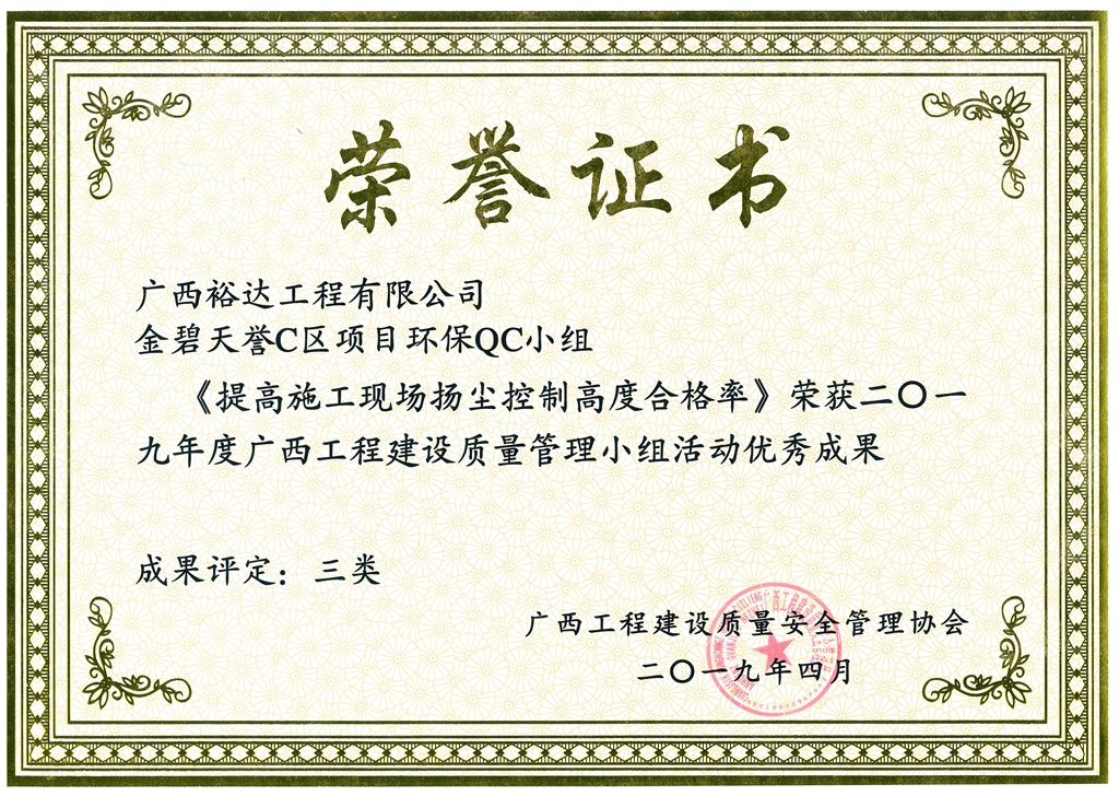 2019年度广西工程建设质量管理小组活动优秀成果